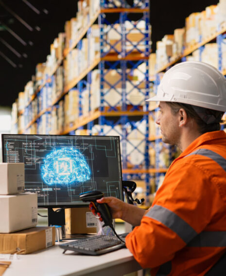 AI działa tu jako warstwa decyzyjna nad WMS. System nie tylko rejestruje ruchy magazynowe, ale: